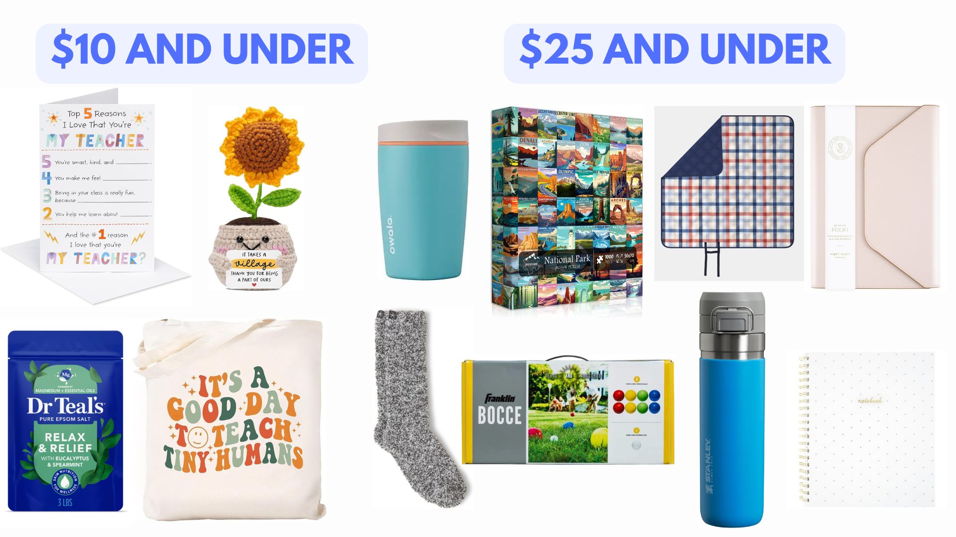 As your Type A Mom friend my job is to streamline the behind-the-scenes work of parenting, and since figuring out what to get teachers is definitely part of that behind-the-scenes work, I'm here to help! I curated a list of great gifts organized by cost for teachers and school staff. Hope these ideas help you choose gifts quickly so you can spend your time enjoying your kids instead of on this busywork!